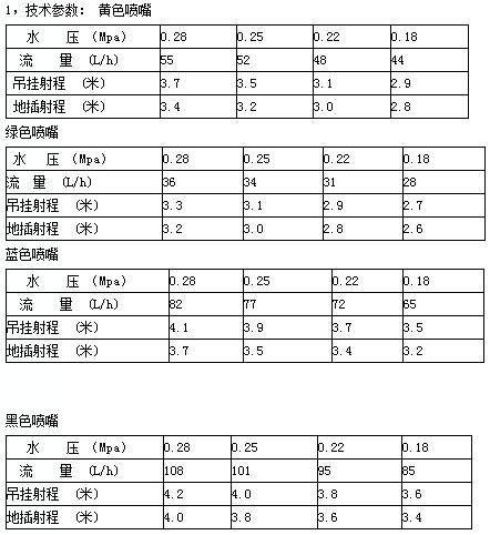 ※ 吊掛射程是以噴嘴離地1.8米所測。地插射程是以噴嘴離地0.35米